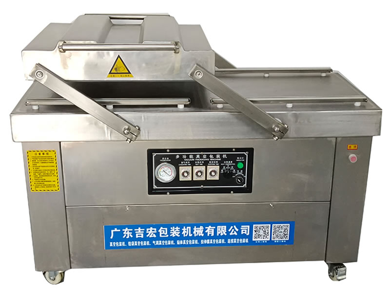 DZ-600/2SB外壳为不锈钢材质,工作时上盖可左右移动,加倍提高生产量。当其中一个工作室正在工作时,另一个工作室可提前做好包装的准备,真空包装机多为食品包装厂使用,或电子、五金、玩具等行业大批量进行真空包装时使用,该机功能优越,维修方便,操作简易、应用广泛等优点。